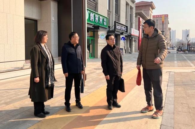 在天津海润天通供热有限公司总经理薛照川的陪同下,张荃一行实地调研了企业运营的星光大道商业街,听取了商业街功能定位、业态布局、招商情况等介绍,尤其对企业自营的酒店项目进行了细致了解。薛照川还围绕近年来为民建社会服务工作和社会公益方面作出的贡献作简要汇报。