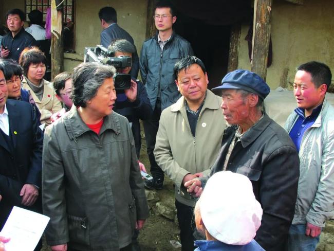 2012年4月,张榕明(前排左)率民建中央专题调研组就六盘山集中连片特困地区扶贫工作赴甘肃开展调研。