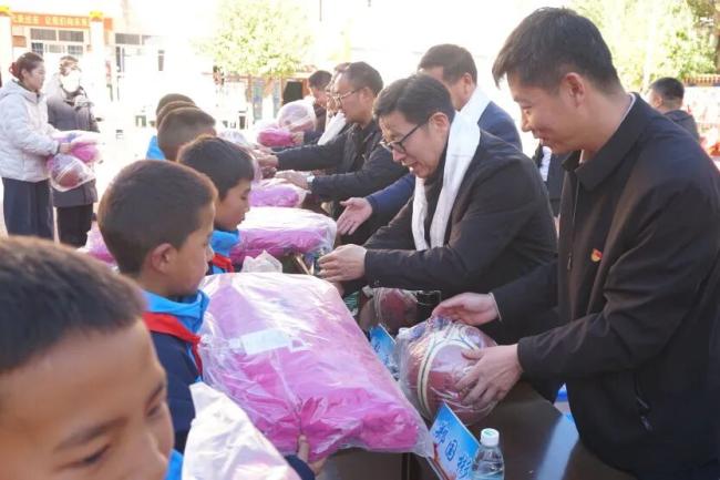 调研期间,市委会一行专程赴卡若区第二小学开展爱心捐赠活动,向学生们捐赠羽绒服、篮球、文具等爱心物资,传递天津民建的温暖与关怀。还到天津市援藏干部公寓看望慰问民建会员、天津援藏医疗队成员孙贺元。