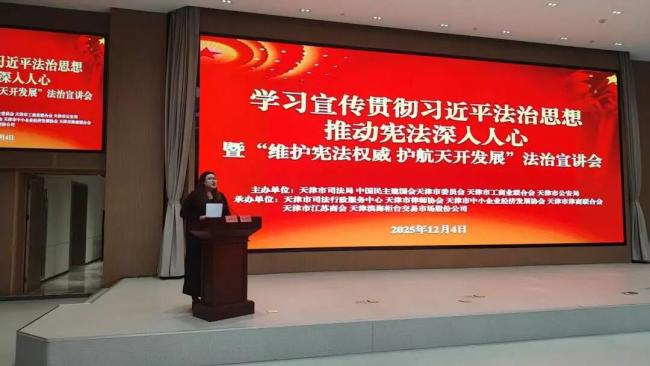 12月4日,民建市委会联合市司法局、市工商联、市公安局,在天开高教科创园举办2025年宪法宣传日暨“维护宪法权威 护航天开发展”法治宣讲会。