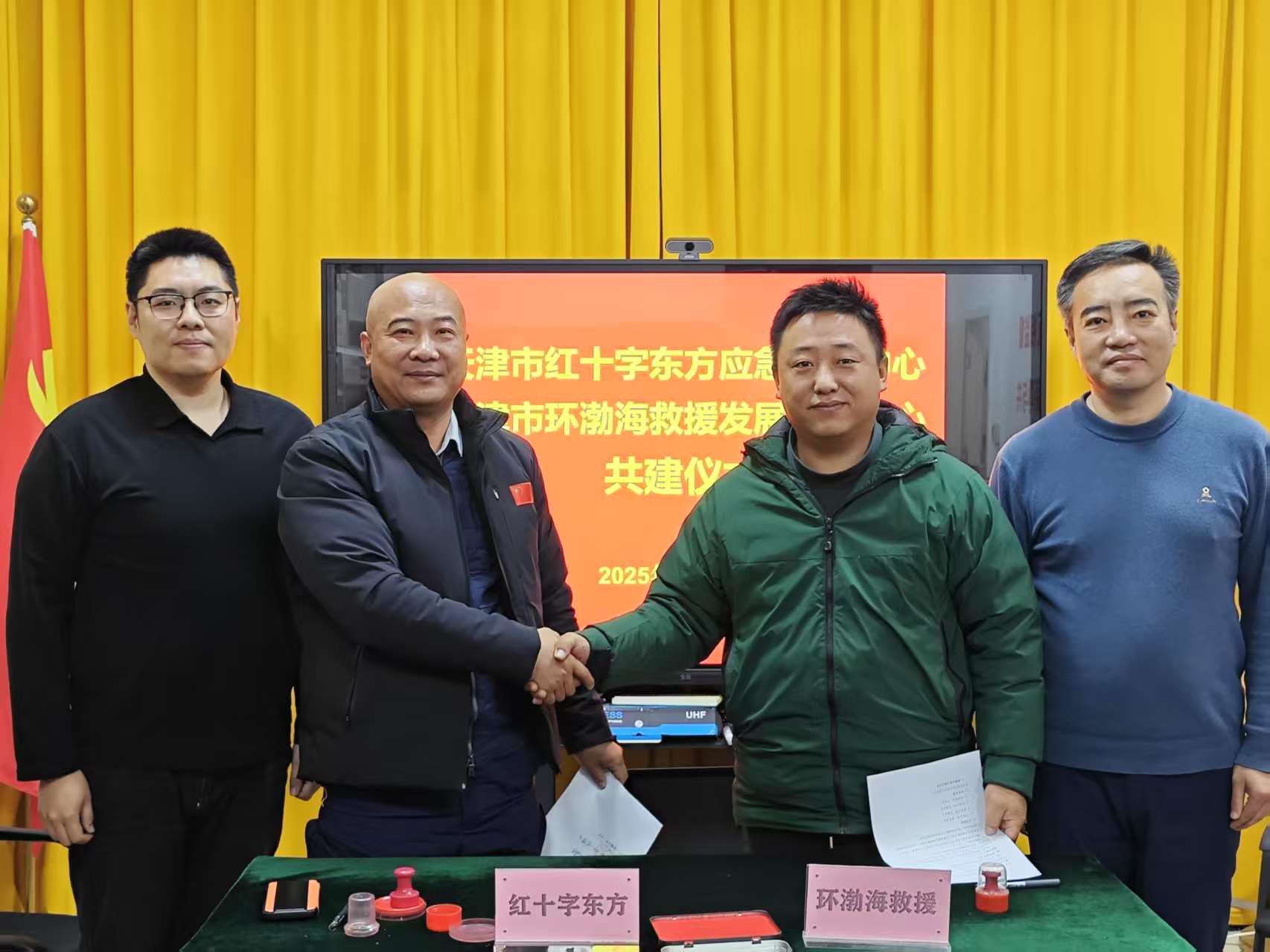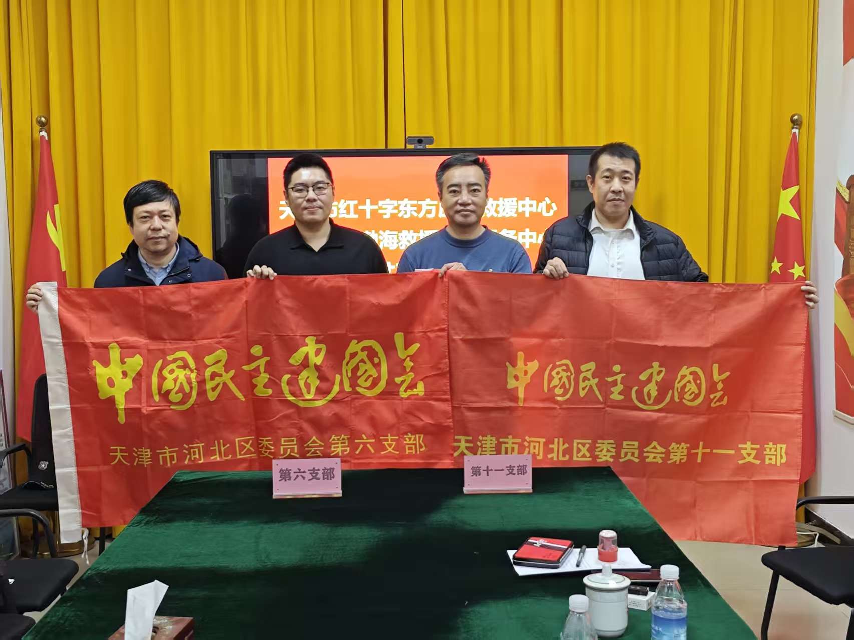 12月21日,河北区委会第六支部、第十一支部联合助力应急救援共建合作签约仪式,河北区委会第六支部主委李霄,第十一支部主委陈伟、副主委王璞,环渤海紧急救援中心及天津红十字会东方应急救援中心负责同志及骨干成员参加活动。