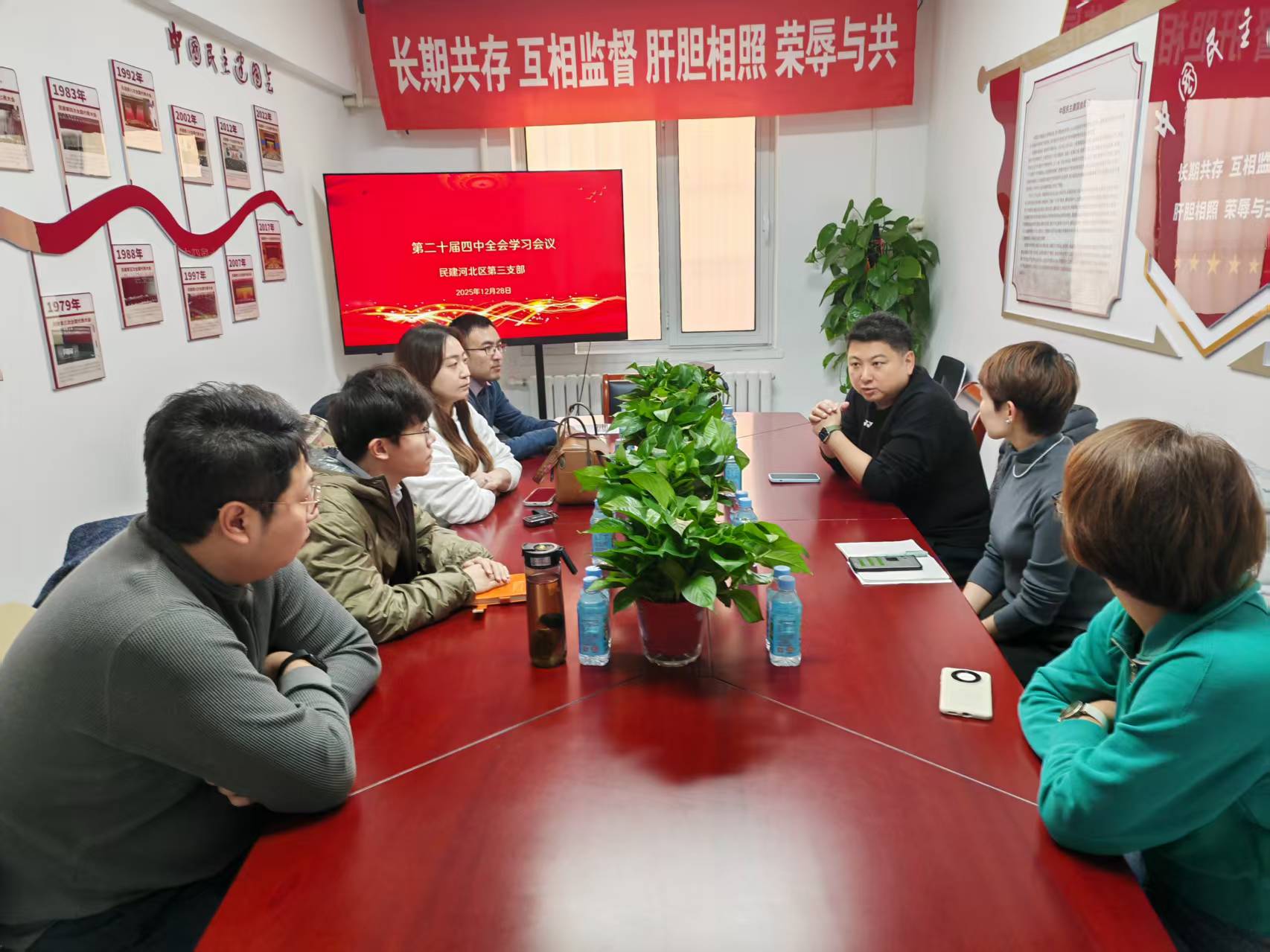 2025年12月28日,河北区委会第三支部召开专题学习会,学习贯彻中共二十届四中全会精神。会议由支部主委庞渤主持,支部9名会员共同参与学习。