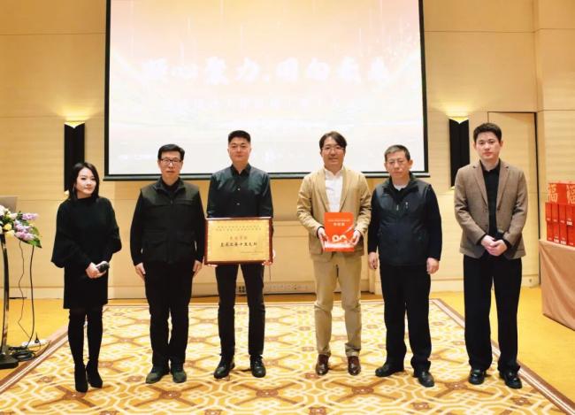 张荃和栗庆林一起为支部颁发民建天津市委会先进集体奖牌。