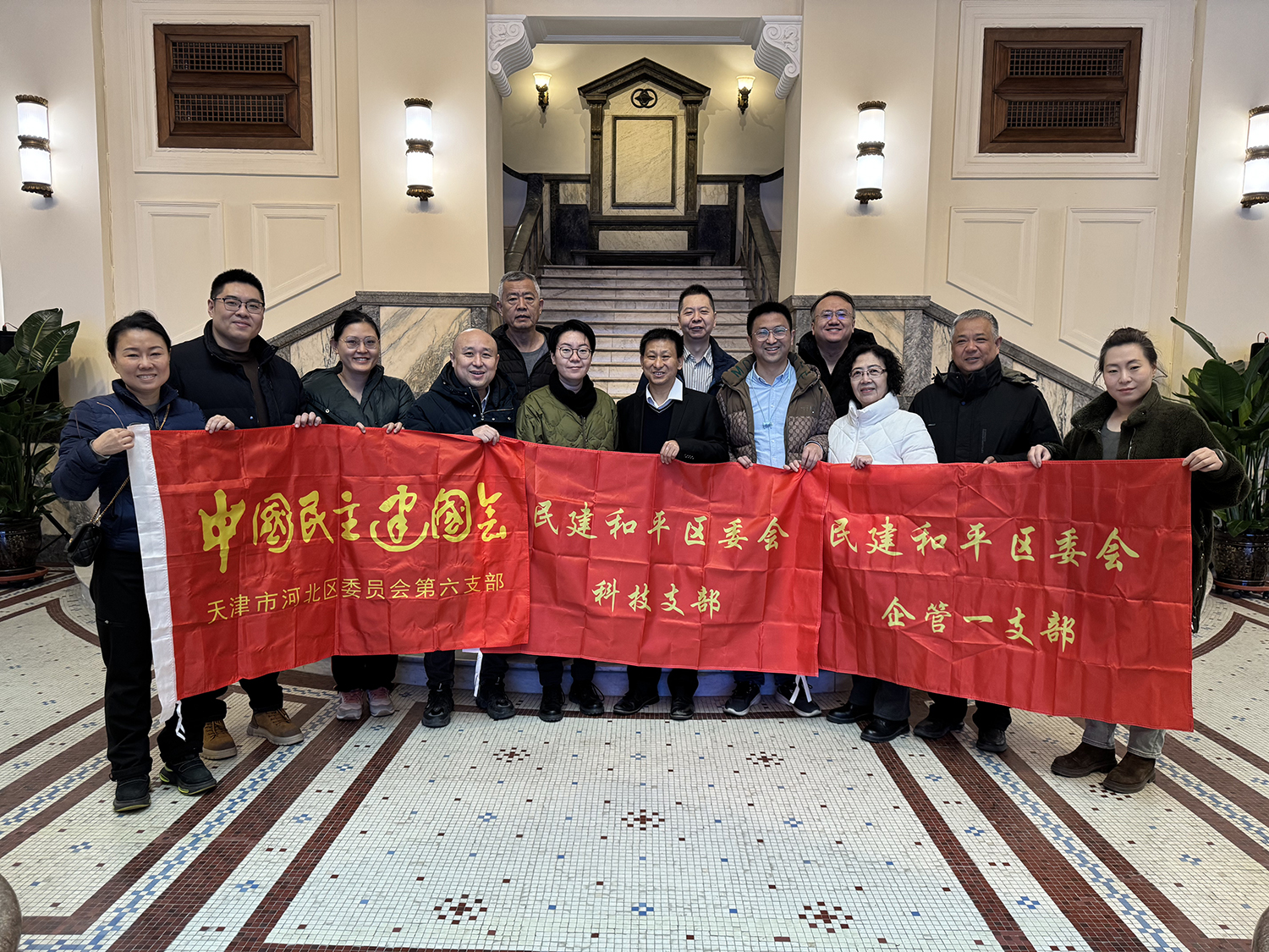 1月17日,和平区委会科技支部、企管一支部与河北区委会第六支部来到天津金融展示中心(原开滦矿务局大楼),开展联学共建活动。