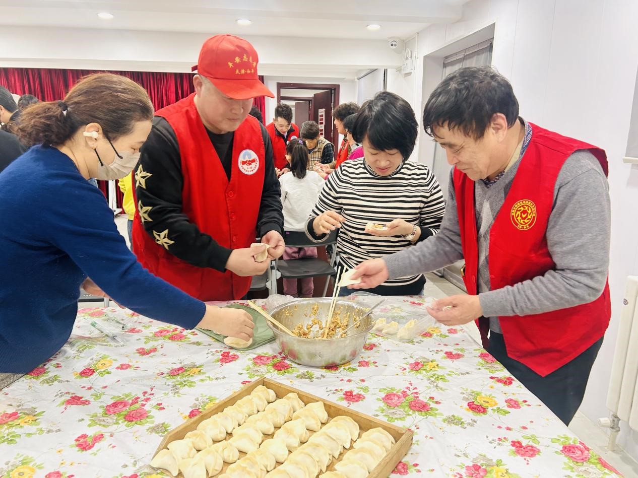 此次活动邀请南营门街道党工委副书记魏彤、街道各科室领导、辖区共建单位代表及社区志愿者、侨胞、残疾人士、青少年共40余人一起参与,民建和平综合二部主委杨智杰作为党派代表,向社区居民捐赠了40份总价值8000元的慰问品,将党派的温暖送到居民家中。活动现场一派热闹景象,大家齐聚一堂,分工协作,揉面、擀皮、包馅,在欢声笑语中共同制作象征团圆美满的饺子。一捏一合间,不仅包出了形态各异的饺子,更包进了邻里间的深厚情谊和对新年的美好期盼。