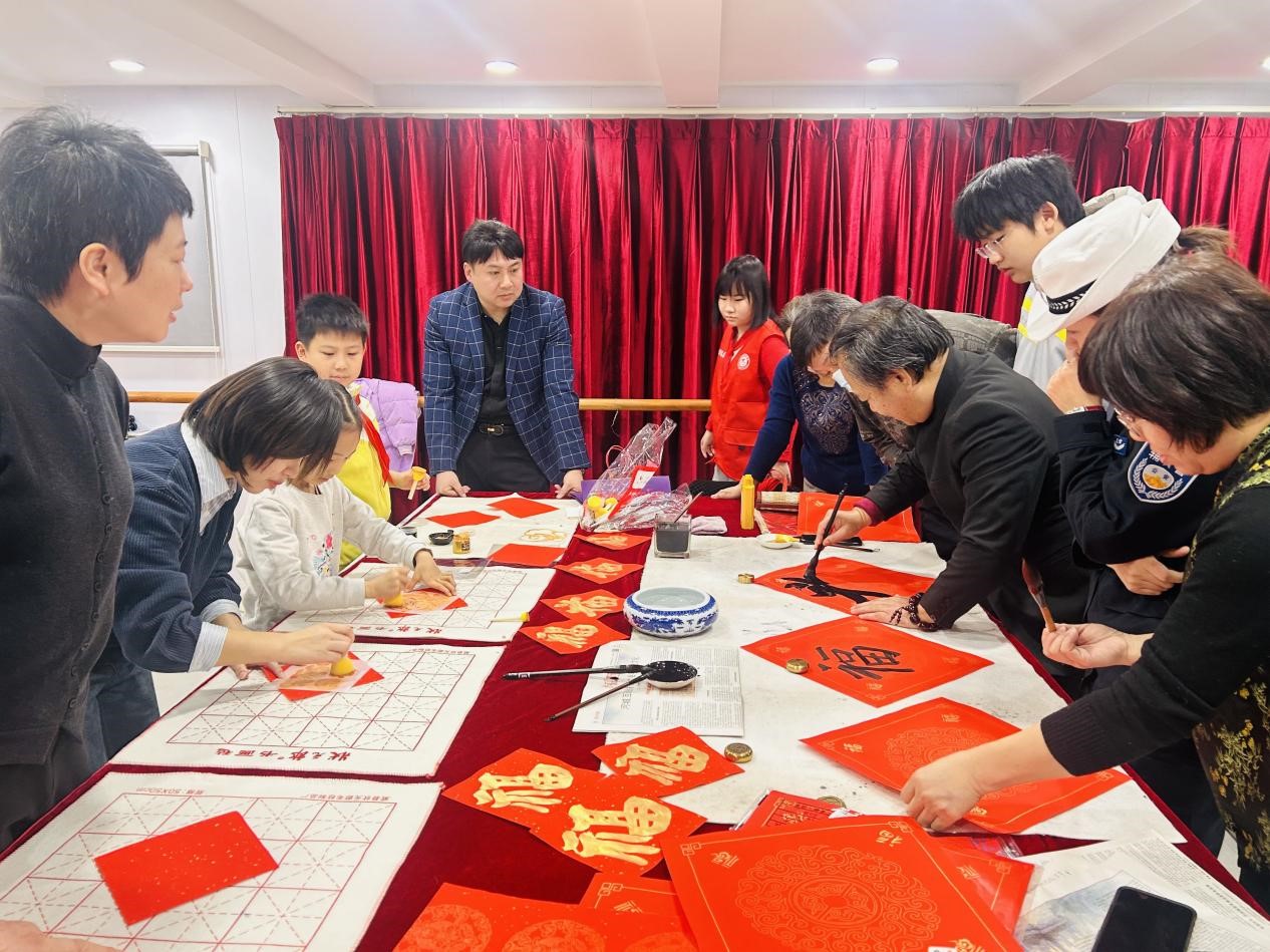 活动同时设置了写福字、送春联环节。大家挥毫泼墨,一个个饱含神韵的“福”字跃然纸上,一幅幅寓意吉祥的春联传递着新春祝福。墨香与饺子香气交织,传统文化与社区温情融合,营造出浓厚的节日文化氛围。活动期间,社区工作人员与民建会员一同走访了社区内的百岁老人和侨眷家庭,为他们送去刚包好的饺子、新春福字和节日的问候。