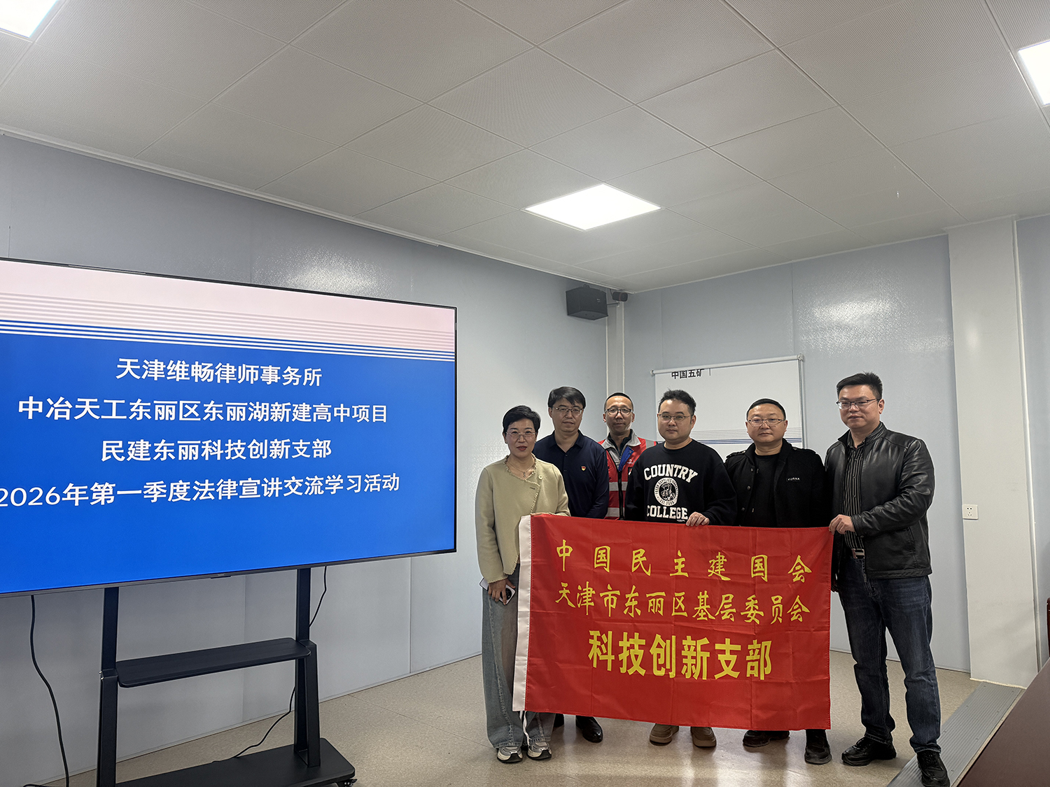 3月28日,民建会员单位天津维畅律师事务所的中共党支部与中共中冶天工东丽区新建高中项目党支部联合开展的2026年第一季度联合党建学习活动,科技创新支部骨干会员受邀参加。东丽城投集团耘泰公司和中冶天工集团有限公司东丽区东丽湖新建高中项目相关领导出席活动。