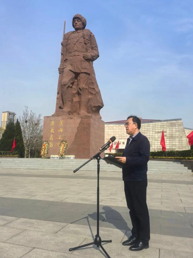 祭奠仪式上,全体人员肃立默哀,杨滨、张尔祥为革命先烈整理挽联,机关干部和会员代表向革命烈士纪念碑敬献花篮。