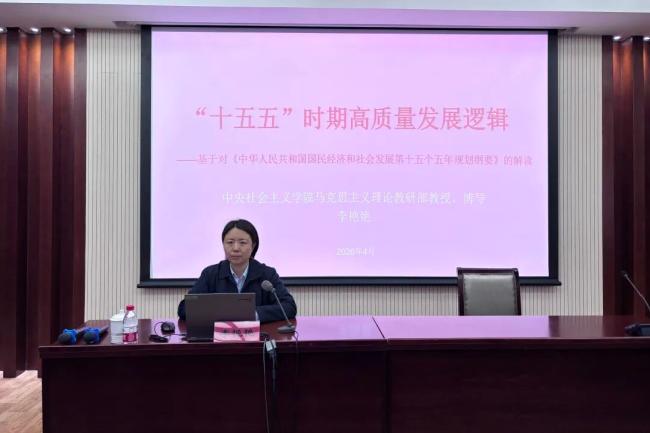 开班式后,中央社会主义学院马克思主义理论教研部教授李艳艳以《“十五五”时期高质量发展逻辑——基于对<“十五五”规划纲要>的解读》为题作专题授课。她基于对“十五五”规划纲要的解读,从时代背景与历史方位、高质量发展的总体逻辑、高质量发展的战略部署三方面着眼,围绕“十五五”规划的14个领域、12个关键词进行了全面阐释,为学员们深入把握高质量发展的逻辑,抢抓“十五五”战略机遇提供了理论支持和行动指南。
